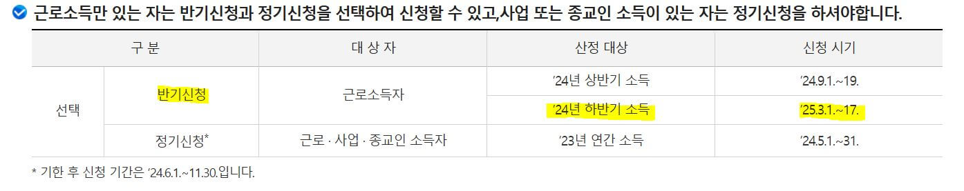 2) 근로장려금 반기 신청기간